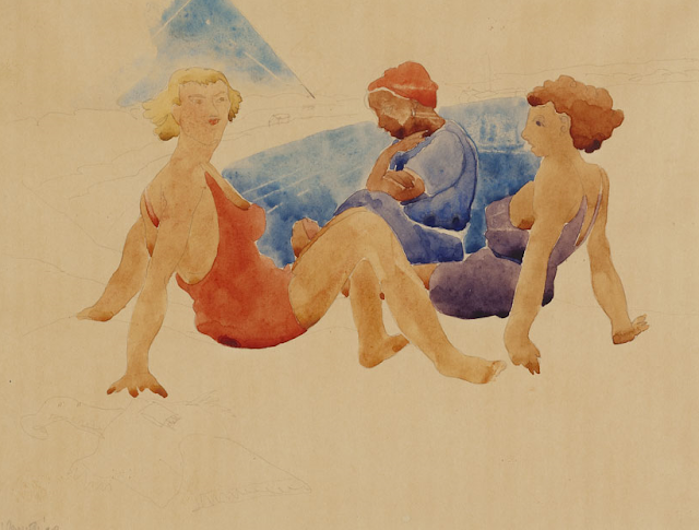 The two private paintings making their public debut in the exhibition are Bouquets de Lilas à Saint Paul de Vence (Bouquets of Lilacs at Saint-Paul) (1978) and Couple aux Muguets (Couple with Lilies of the Valley) (1973). Lilas features two large vases containing lilacs that tower over the distant sunlit village framed in the background, and a figure stretched out in the left foreground. In Couple aux Muguets a man and woman standing behind a light-filled window affectionately embrace – a theme common in Chagall’s work – behind two vases holding abundant bouquets of white lilies-of-the-valley nestled in their large emerald-green leaves. Above Chagall’s signature, the piece is inscribed to his daughter Ida: “Pour Ida, Papa.”